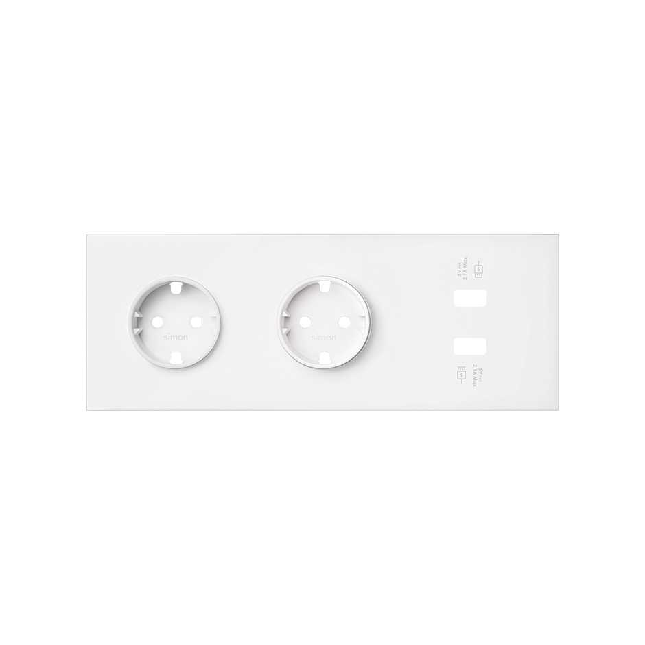 Kit front para 3 elementos con 2 bases enchufe schuko y 1 cargador doble 2xUSB blanco mate Simon 100