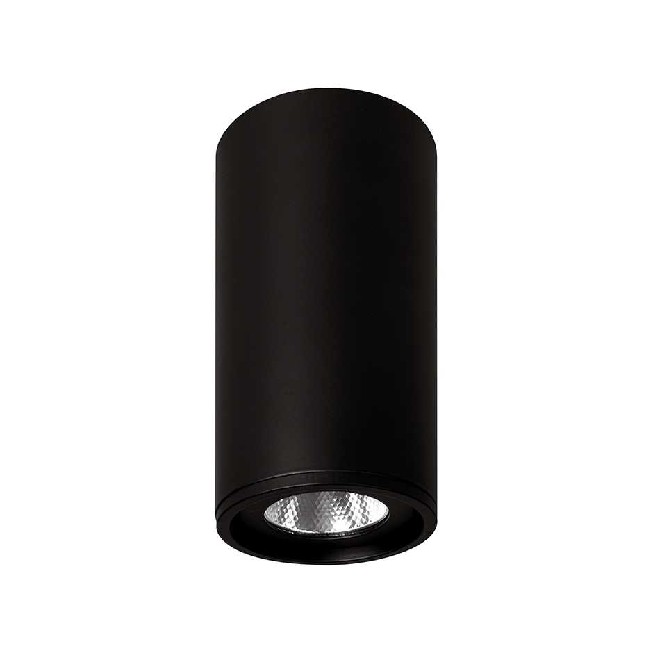 Proyector 640.32 Superficie , de SIMON, con tecnología LED COB y reflector para una distribución fotométrica SPOT de 20º . Cuerpo fabricado en inyección de aluminio y pintado en Negro. Reflector de aluminio de alta pureza y disipador pasivo fabricado en aluminio de alta transmitancia totalmente integrado en el cuerpo cilíndrico de la luminaria. Equipo electrónico incorporado en el interior de la luminaria, aislado del cuerpo óptico y de la temperatura que éste último genera. Lúmenes disponibles 900 lm para NW, y consumo total de la luminaria de 9 W (eficiencia del sistema real de 100 lm/W ). Índice de reproducción cromática CRI>80 . Mantenimiento luminoso L70 >100.000h a 25ºC y L90>30.000H a 25ºc. Seguridad fotobiológica: Categoría Exento Dimensiones de la luminaria:75mm de diámetro x 145,2mm de profundidad. Peso: 0.6 kg IP 20. Tensión de alimentación de 120-240V, 50-60Hz. Marcado CE.