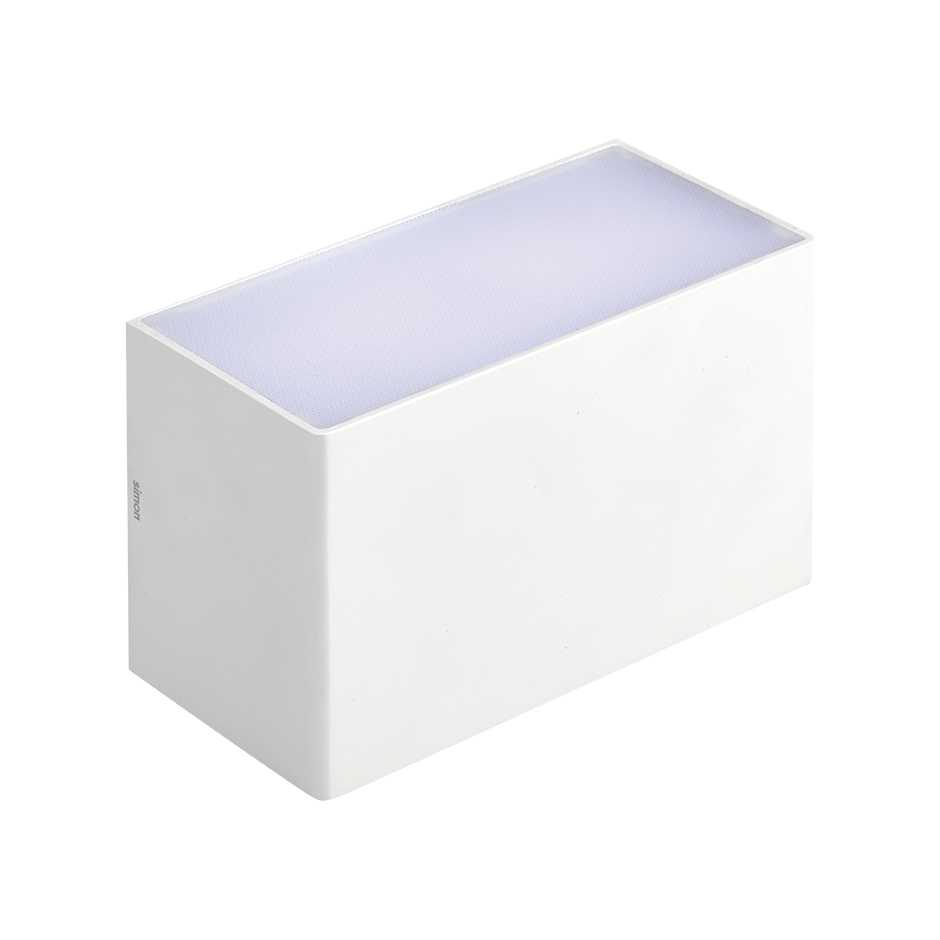 Luminaria de pared 707.31 de SIMON, para instalación en pared, con tecnología LED, distribución fotométrica doble DIFFUSED de 70º-70º grados respectivamente. Cuerpo fabricado en inyección de aluminio y pintado en Blanco, con un diseño atemporal y tornillería totalmente oculta. Equipo electrónico incorporado en el interior de la luminaria, con control ON-OFF. Lúmenes disponibles 750 lm para NW y consumo total de la luminaria de 12 W (eficiencia del sistema real 63 lm/w). CRI>80. Tensión de red 230 V AC 50Hz. Mantenimiento luminoso L70 >30.000 h a 25ºC. Dimensiones luminaria: 120x75x 60 mm. IP 20. Peso de la luminaria 0.45 kg. Seguridad Fotobiológica: Grupo exento. Marcado CE.