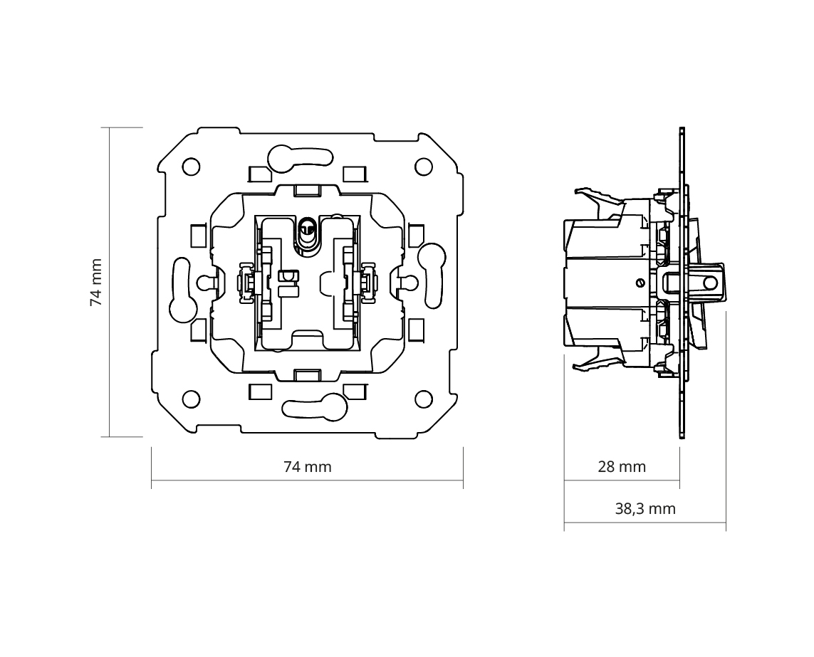Conmutador con una intensidad de 10 AX y una potencia de 250 V~ incluyendo un sistema de embornamiento rápido que permite una fácil, cómoda y rápida instalación del elemento, esto es gracias a la compatibilidad que tiene con los mecanismos de la serie Simon 77, gracias a ello podrás tener instalado el elemento en cuestión de minutos, sin perder un segundo de más, simplemente tendrás que insertar y apretar el mecanismo para que quede correctamente instalado. El elemento de la serie Simon 75 tiene además la posibilidad de implementar función señalizadora mediante soporte señalizador y tecla con visor. El conmutador está fabricado con los mejores componentes metálicos con aislamiento termoplástico libre de halógenos con lo que adquieres un elemento con la mejor calidad posible para rendir en diferentes intervalos de temperatura.