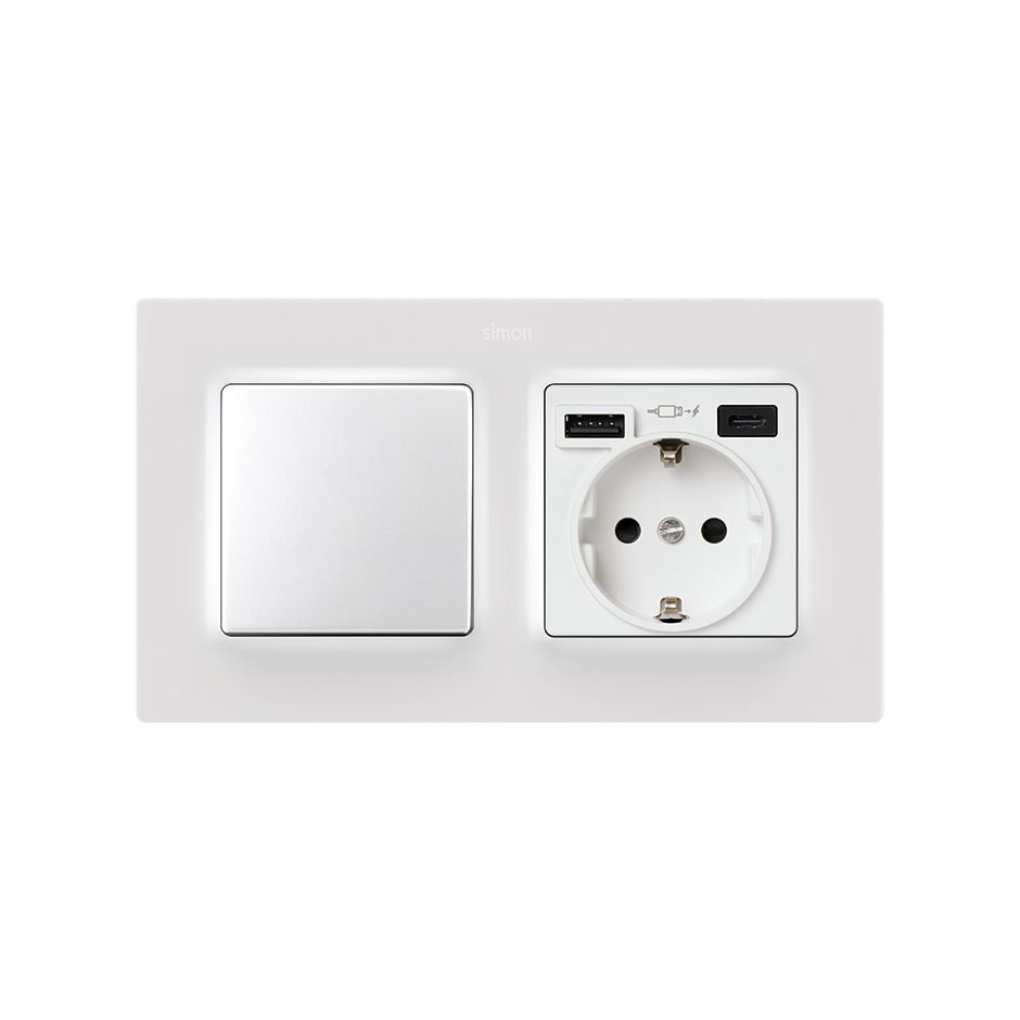 Tapa para la base de enchufe schuko con 2 cargadores USB A + C 10,5W blanco mate Simon 82 Concept