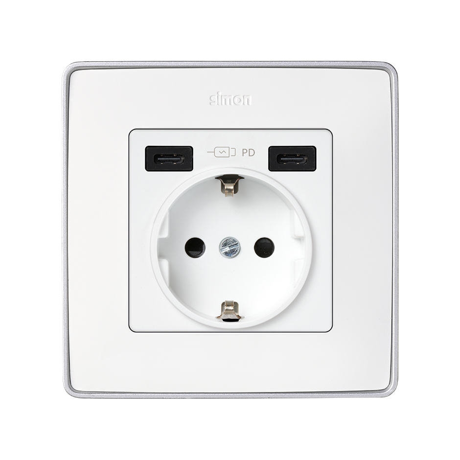 Tapa base enchufe schuko con 2 USB C+C blanco Simon 82