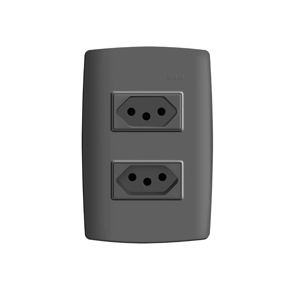 Conjunto de 2 tomadas 2P+T 1 placa de 2 postos 4x2 com suporte 20 A 250 V~ grafite Simon 30