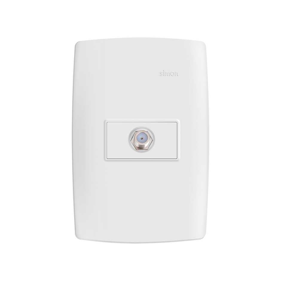 Conjunto de 1 conector de TV coaxial 1 placa de 1 posto 4x2 com suporte branco Simon 30
