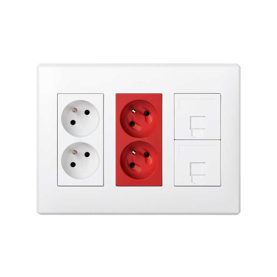 Prise double 2P+T 16A 250V ~ avec dispositif de sécurité et connexion de terminale à 1Click® rouge Simon 500 Cima