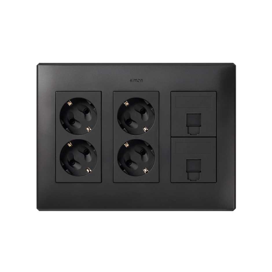 Cadre mural et support de cadre pour 3 modules doubles graphite Simon 500 Cima