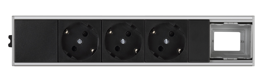 Ofiblock Compact monté et câblé avec 3 schuko et découpe arrière à la dernière position
