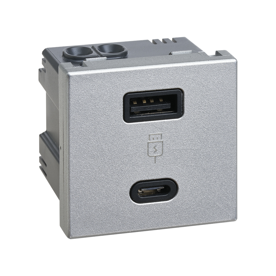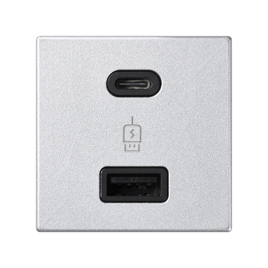 Cargador USB tipo "A+C" 3,1A con Quickcharge 2 elementos K45 aluminio