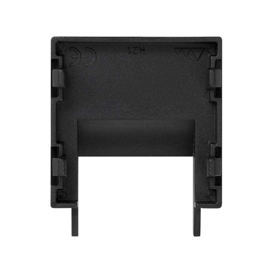 Toda un selección de conectividad para los puestos de trabajo con la serie Simon K45, descubre todos los aspectos técnicos de la placa embellecedora para la entrada de canal de 20x30 mm de un solo elemento con un acabado en color negro.
