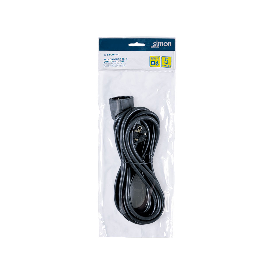 PROLONGADOR 5M H05VV-F 3G1.5MM² 16A 250V~ NEGRO SIMON