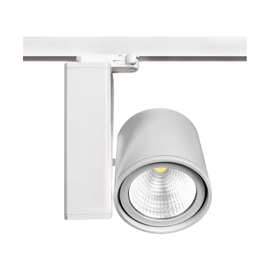 Projetor 640.00 em Carril trifásico, da SIMON, com tecnologia LED COB e refletor para uma distribuição fotométrica WIDE FLOOD de 40º. Corpo fabricado em injeção de alumínio e pintado em branco. Refletor de alumínio de alta pureza e dissipador passivo fabricado em alumínio de alta transmitância totalmente integrado no corpo cilíndrico da luminária. Frontal extraível, que inclui vidro de proteção, que facilita a instalação de filtros dicroicos para modificar a temperatura de cor e a tonalidade da luz. Equipamento eletrónico incorporado no interior da luminária e isolado do corpo ótico e da temperatura que este último gera. A luminária é orientável 360 graus de rotação horizontal e 220º vertical. Lúmenes disponíveis 2100 lm para WW, e consumo total da luminária de 30 W (eficiência do sistema real de 70 lm/W). Índice de reprodução cromática CRI>92. Manutenção luminosa L70 >100 000 h a 25 °C e L90 >30 000 h a 25 °C. Segurança fotobiológica: Categoria Isento Dimensões da luminária: 100 x 102 mm. Peso: 1,4 kg IP 20. Tensão de alimentação de 120-240 V, 50-60 Hz. Marcação CE.