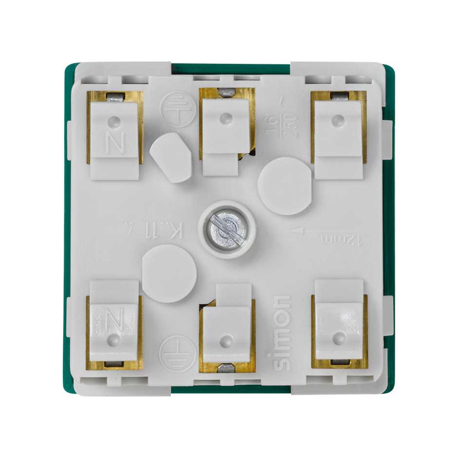 Base de tomada schuko 16 A 250 V~ com dispositivo de segurança e ligação rápida de bornes verde Simon K45