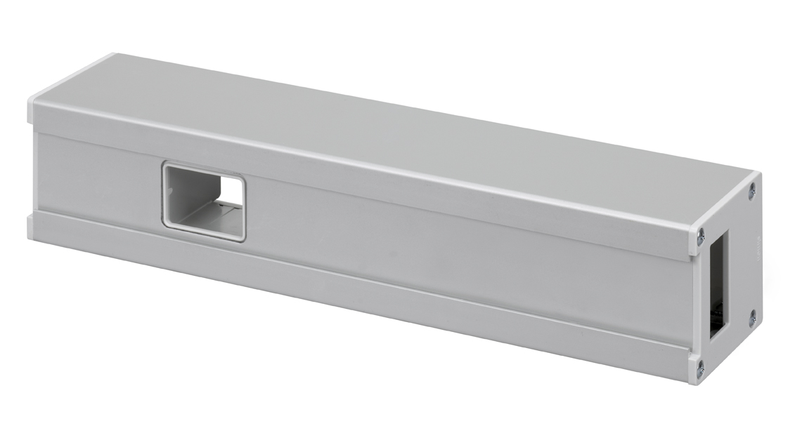 Perfil Ofiblock Compact em alumínio anodizado, projetado para oferecer máxima funcionalidade num tamanho compacto, permitindo a convergência entre soluções de energia, voz, dados e multimédia. Com profundidade mínima e uma ampla gama de acessórios, admite diversas possibilidades de instalação em piso técnico, parede, mobiliário, superfície metálica com íman ou em calha DIN.