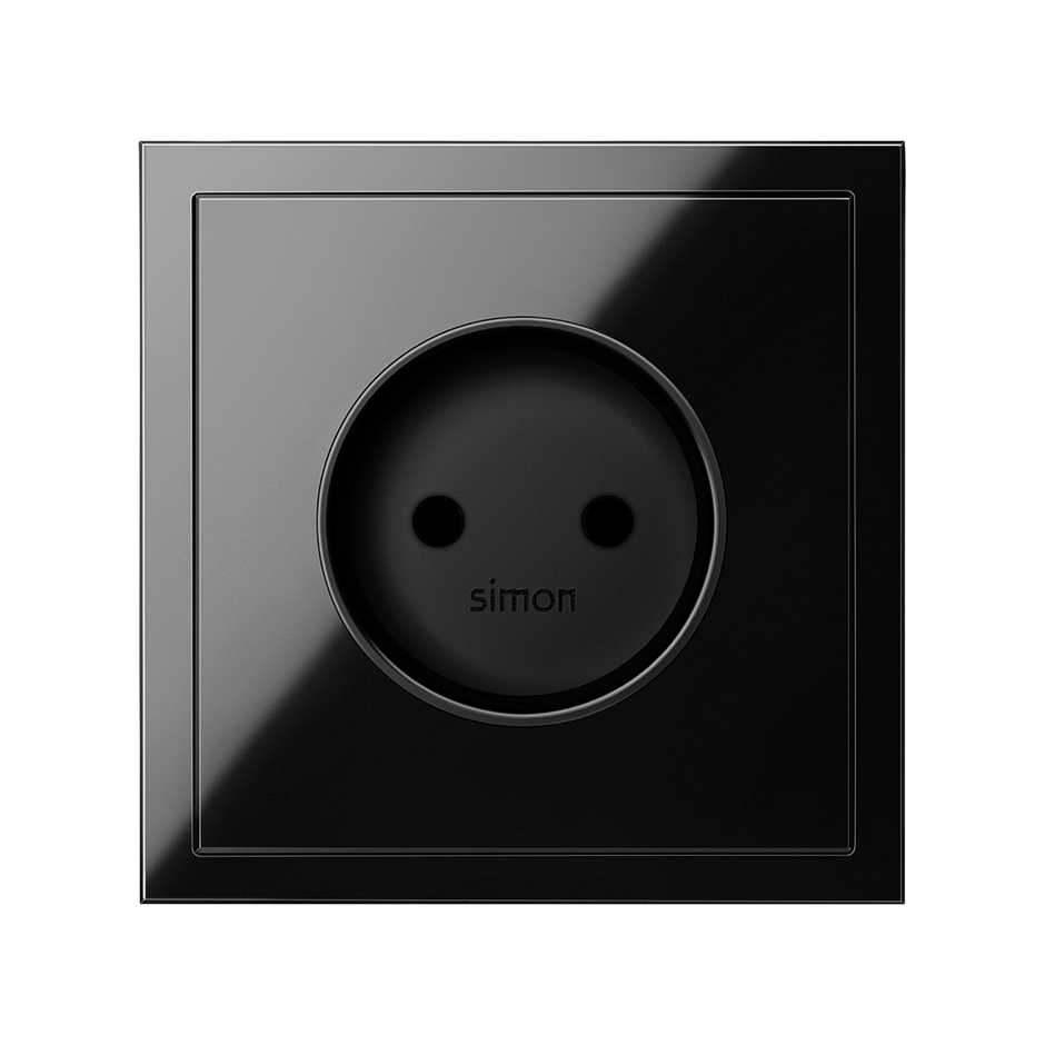 Накладка розетки без заземления цвета черный глянец Simon 100