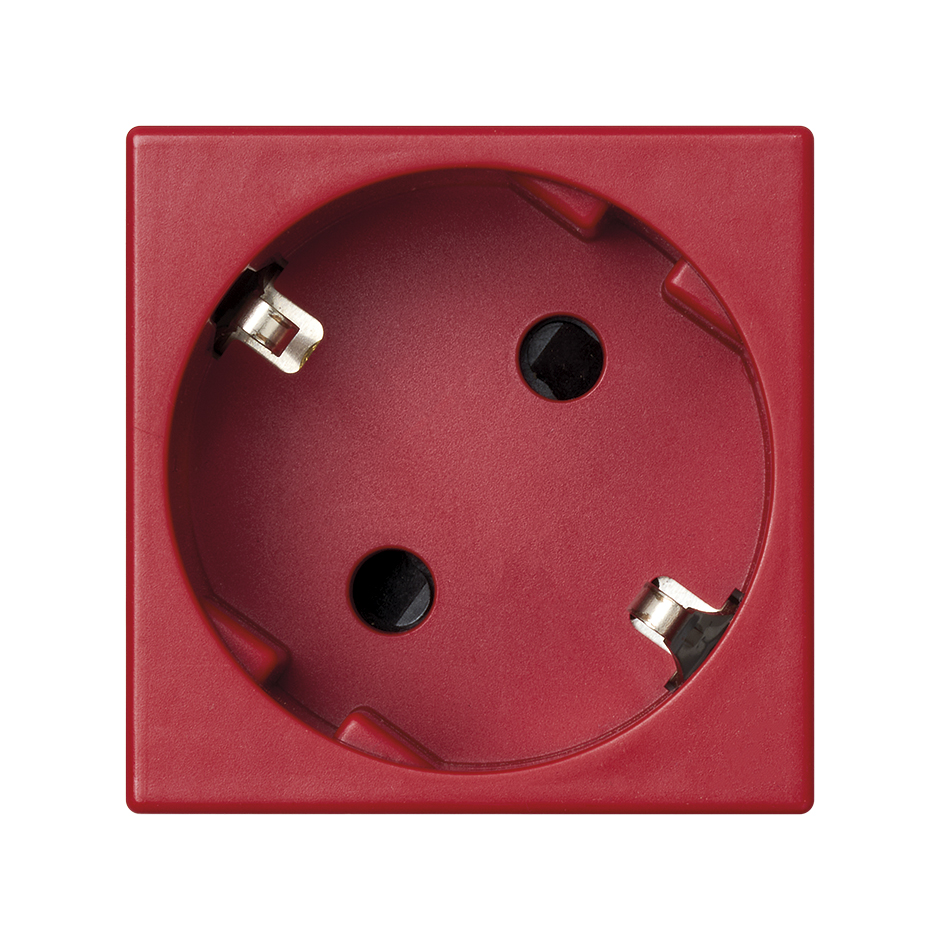 Розетка с заземлением и шторками K45 Schuko 2Р+Е 16A 250В~ красного цвета с винтовым соединением Simon K45